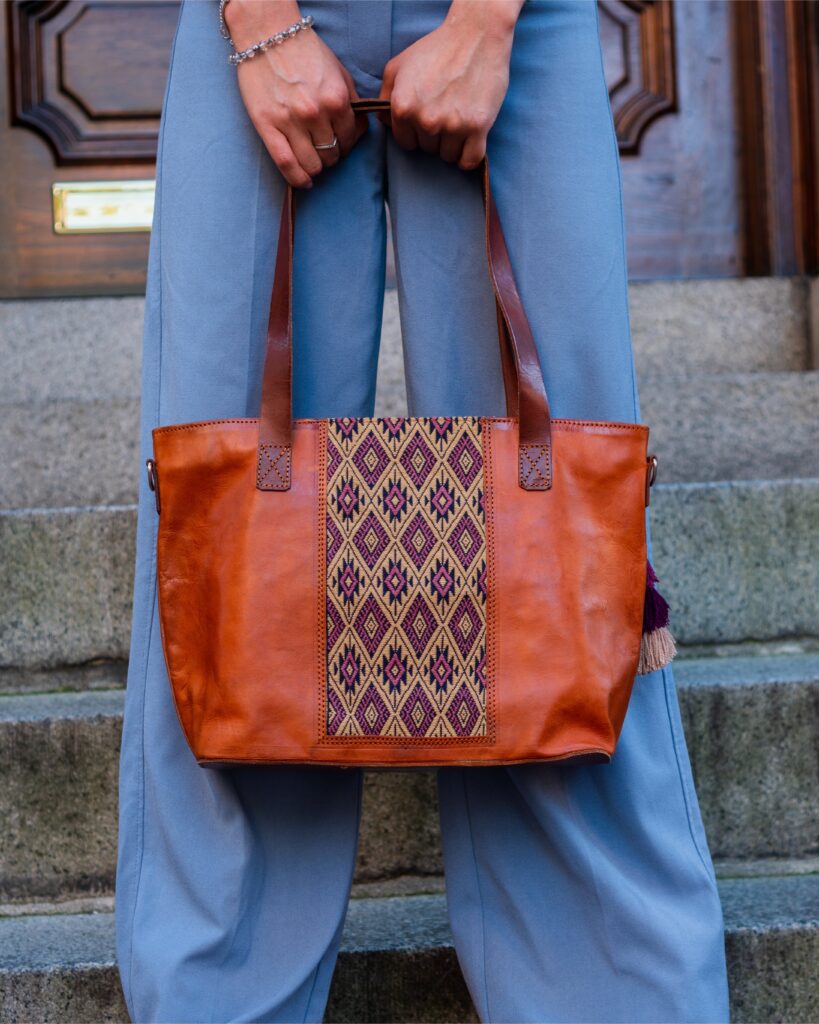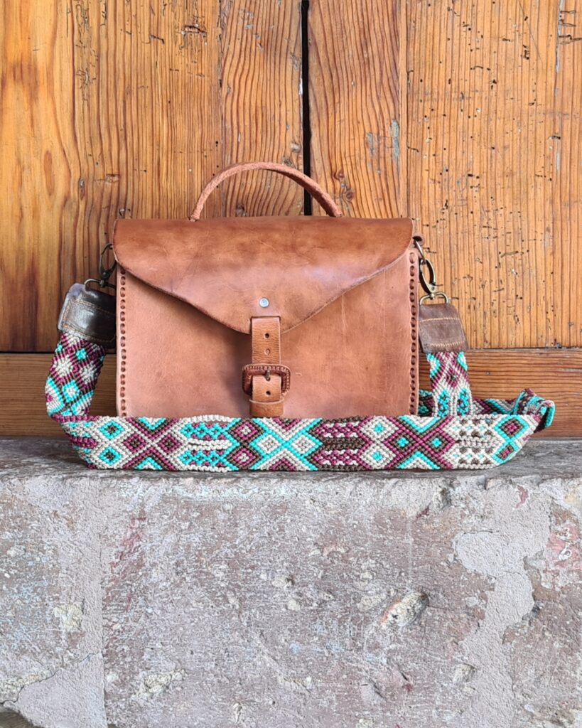 This bag brings together the best of two worlds: undyed, natural leather that reveals its authentic texture and character, paired with a Chiapanecan backstrap loom panel, where each thread reflects tradition and artisanal mastery. The combination of materials creates a unique piece, where contemporary design and cultural heritage converge in timeless elegance.